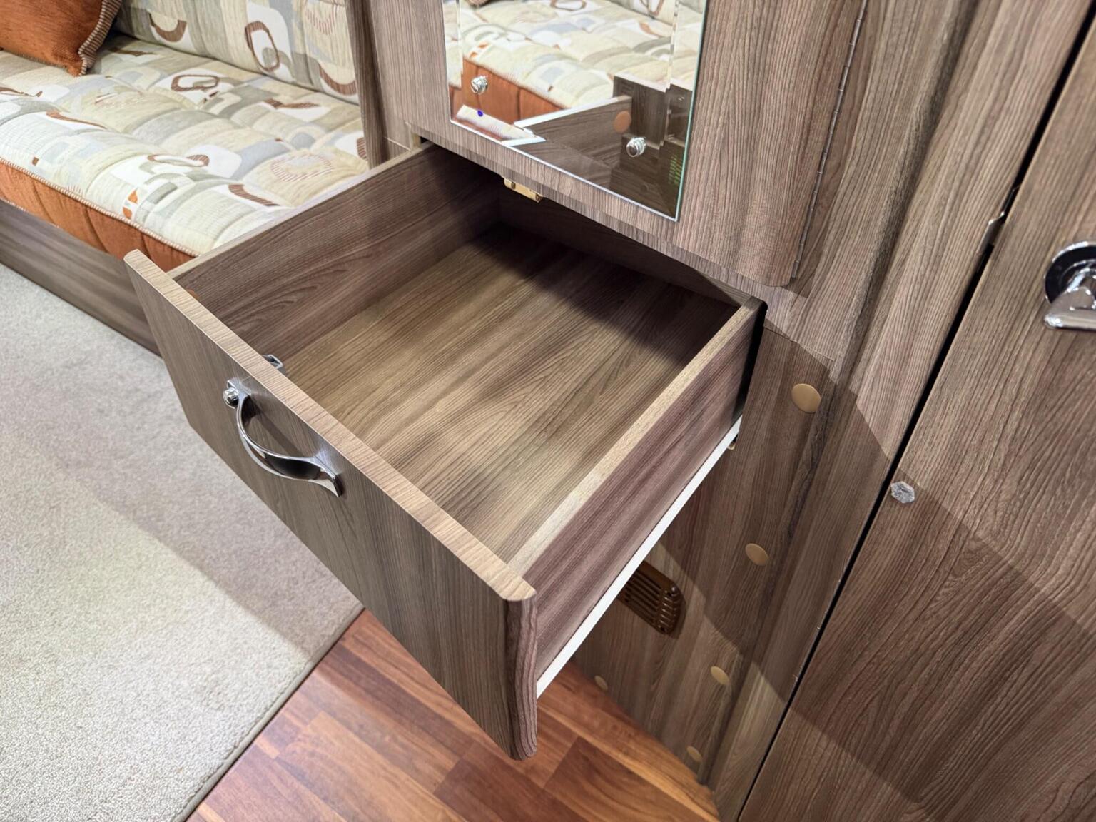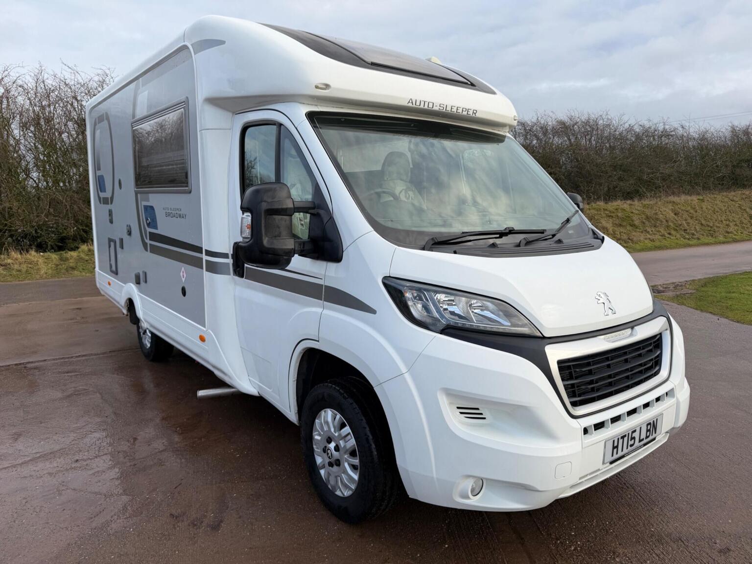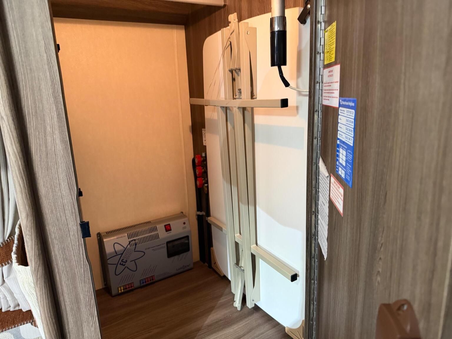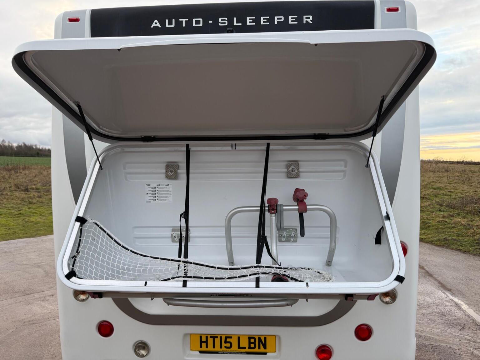 There is Ample storage throughout the vehicle, including a good size wardrobe and upper lockers, in addition to outside storage access. Externally, this Auto-Sleepers Broadway EK has a roll out awning, reversing camera, solar panel, BBQ point, alloy wheels, Status TV aerial, a 25 litre underslung gas tank, a Electric entrance step, and an external 230v socket.