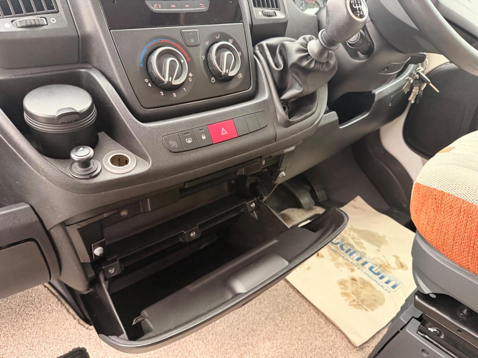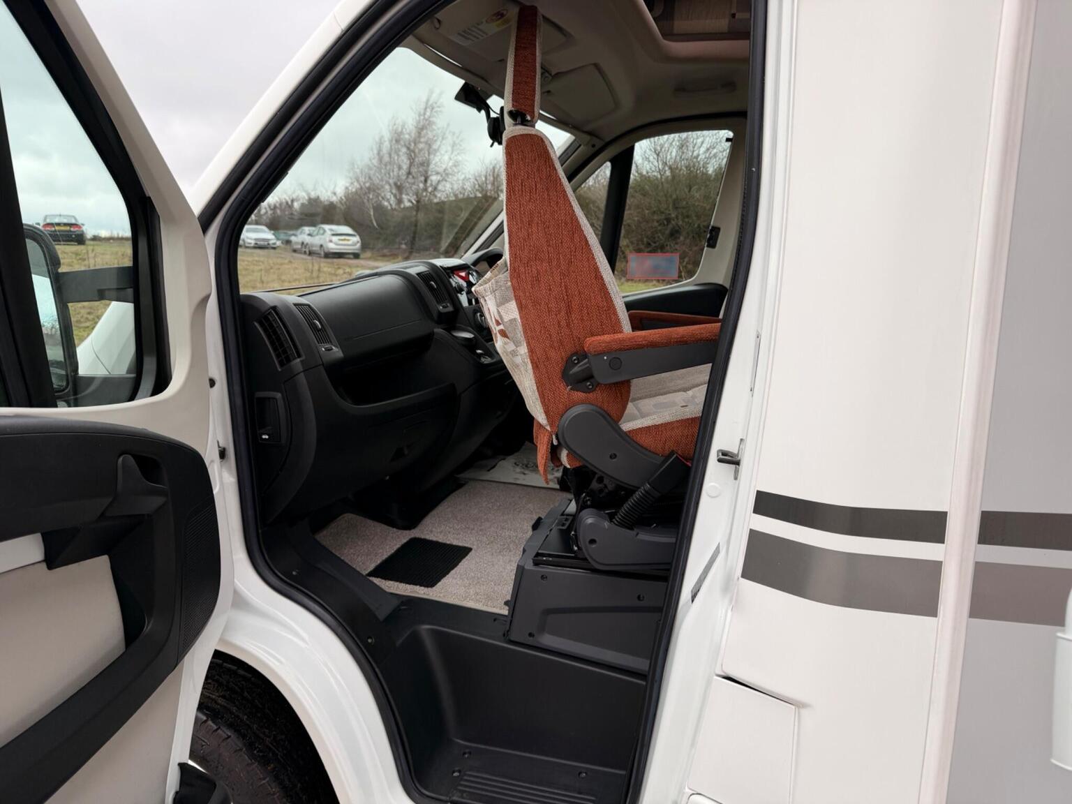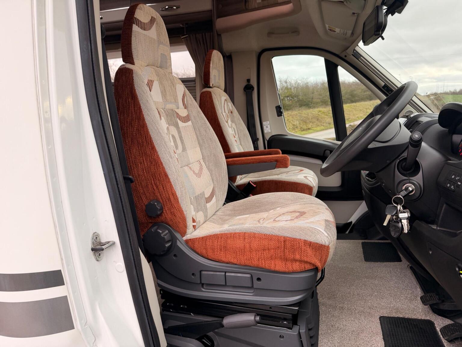 The cab comes packed with a host of features for a comfortable touring experience, including swivel cab seats with armrests, cab air conditioning, Solar Panel, cab blinds for privacy, cruise control, steering wheel controls, DAB radio, Reverse Camera, safety airbags, and electrical heated folding wing mirrors.