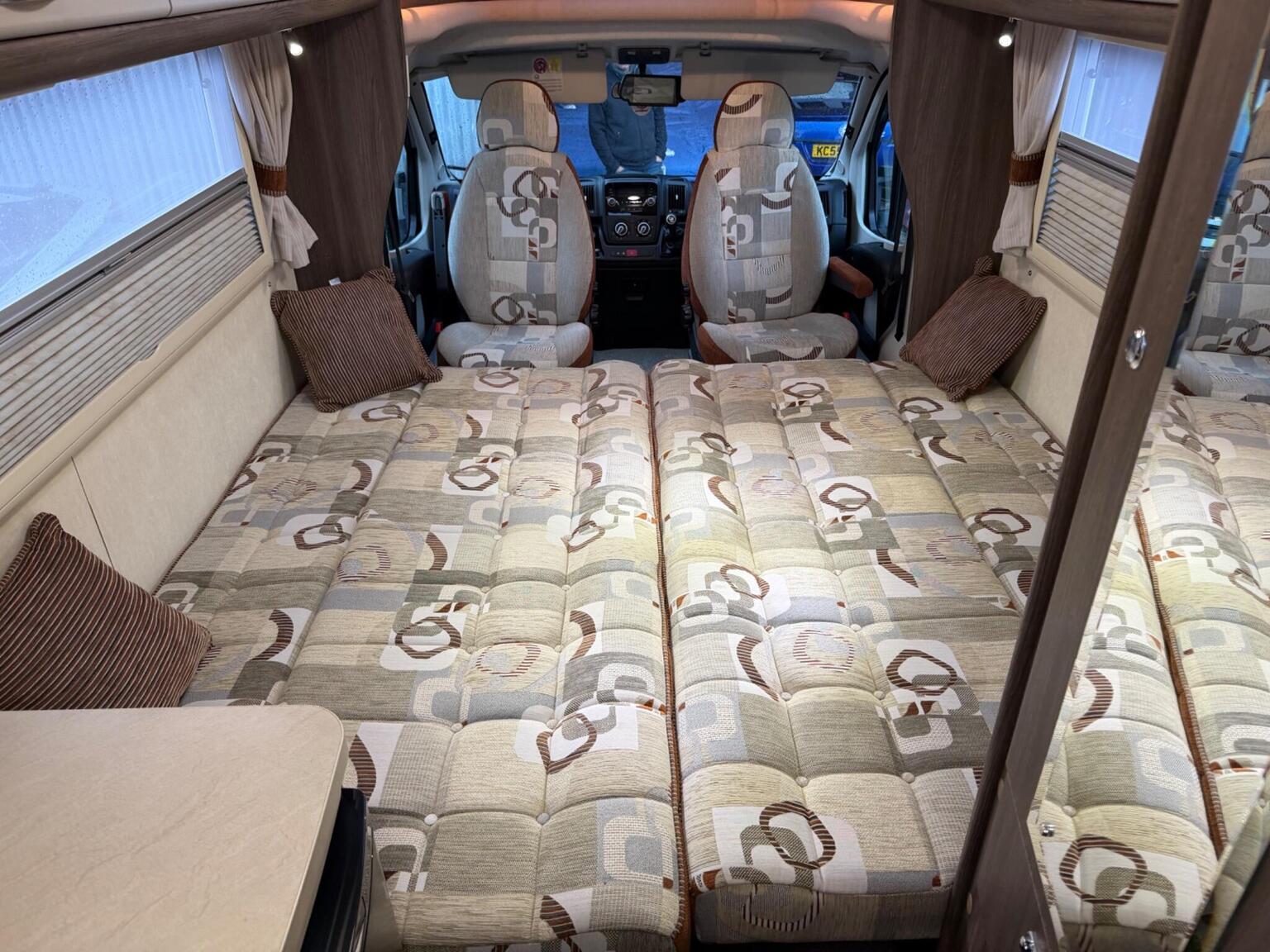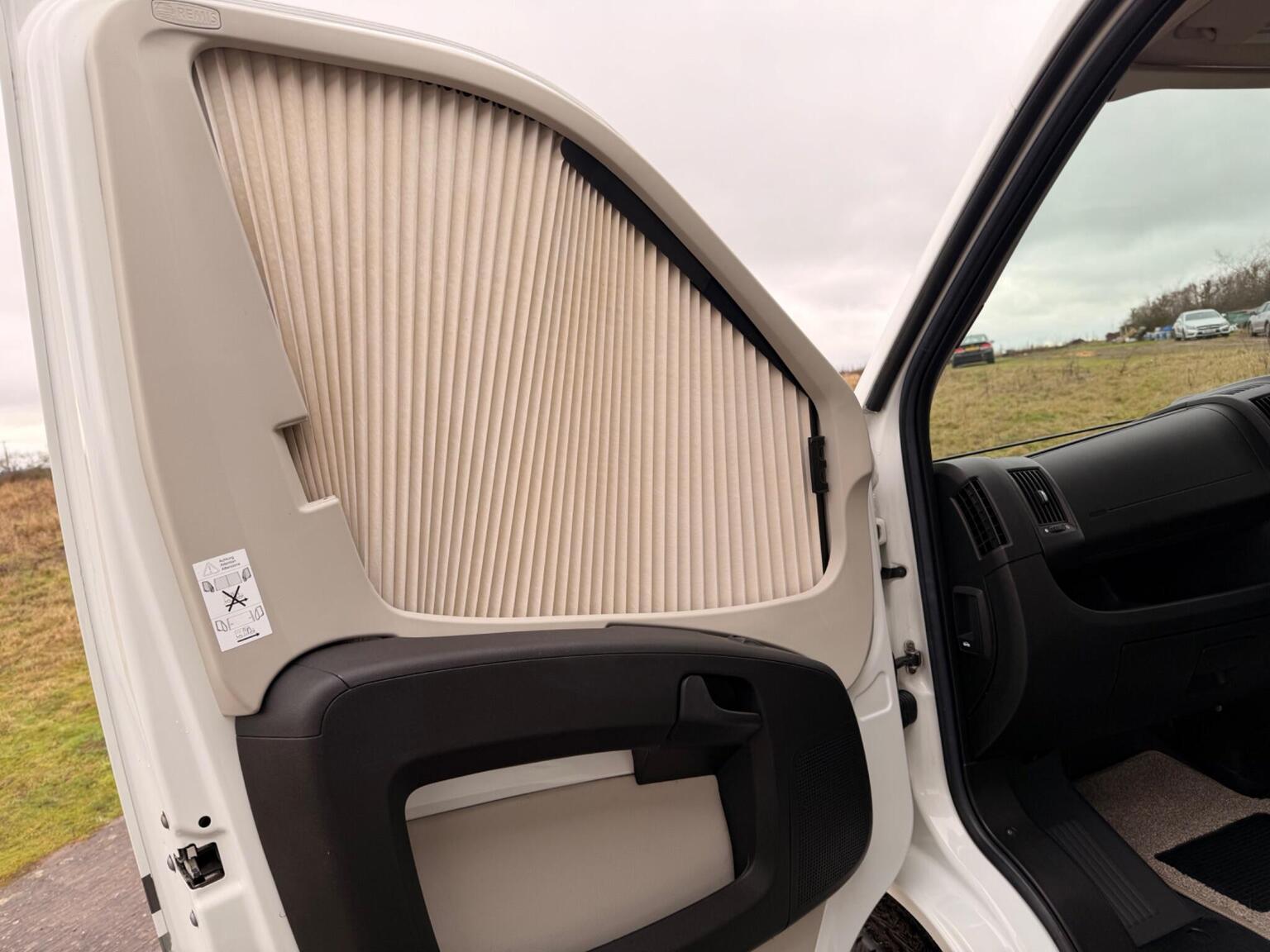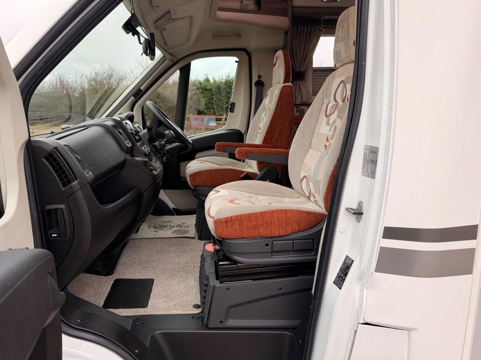 The cab comes packed with a host of features for a comfortable touring experience, including swivel cab seats with armrests, cab air conditioning, Solar Panel, cab blinds for privacy, cruise control, steering wheel controls, DAB radio, Reverse Camera, safety airbags, and electrical heated folding wing mirrors.